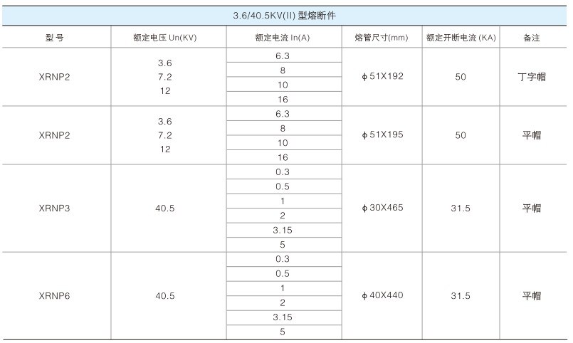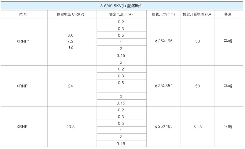 XRNP1-40.5/-31.5 40.5(35) 0.2,0.5,1.2,3.15 50